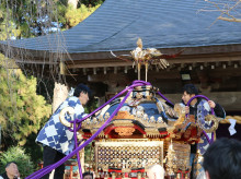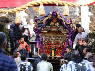 多古町の松崎神社(多古町東松崎)で1月18日、3月8日に開催される60年に1度の「神幸祭(しんこうさい)」に向けた2回目のリハーサルが行われた。