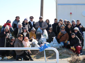 九十九里町片貝海岸で1月25日、毎月恒例のビーチクリーン活動が行われ、約30人が参加した。