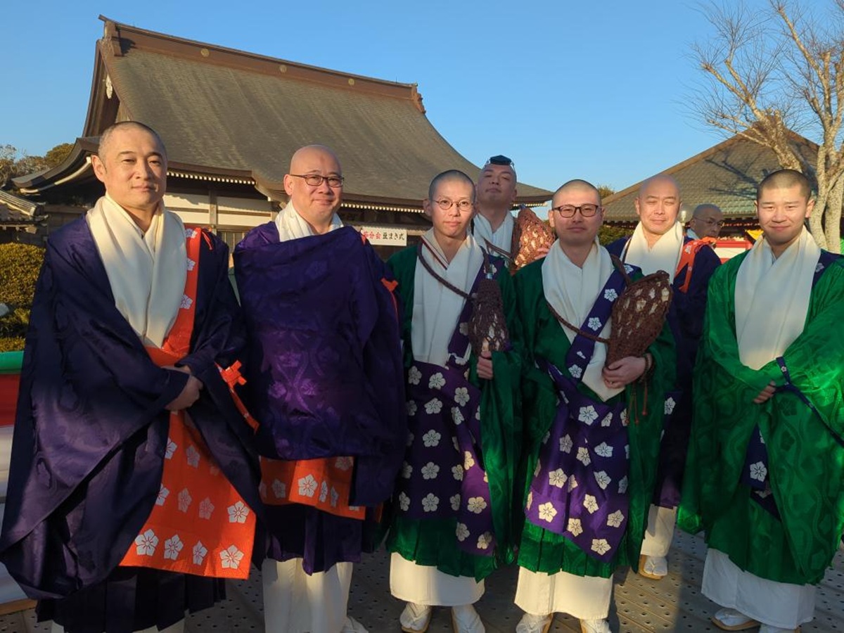 匝瑳の川向山長福寺(匝瑳市川向)で2月1日、恒例の節分会豆まき式が行われ、700人以上の来場者でにぎわった。