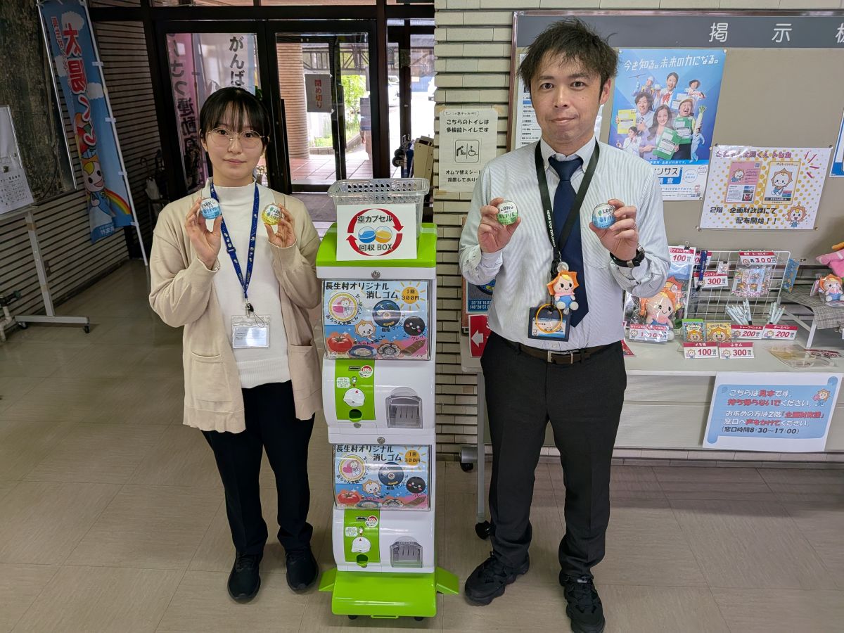 長生村交流センター(長生村岩沼)に4月1日、長生村オリジナル消しゴムのカプセルトイが設置された。