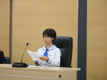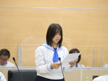 一宮町議会議場(一宮町一宮)で10月7日、「令和7年度一宮町中学生議会」が開催され、一宮中学校3年生13人が議員として町政について質問した。