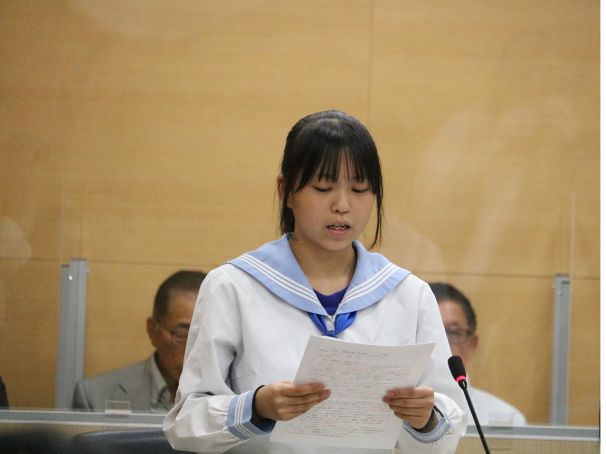 一宮町議会議場(一宮町一宮)で10月7日、「令和7年度一宮町中学生議会」が開催され、一宮中学校3年生13人が議員として町政について質問した。