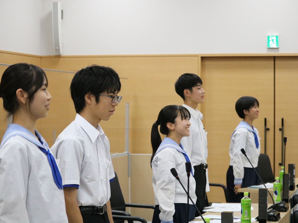 一宮町議会議場(一宮町一宮)で10月7日、「令和7年度一宮町中学生議会」が開催され、一宮中学校3年生13人が議員として町政について質問した。