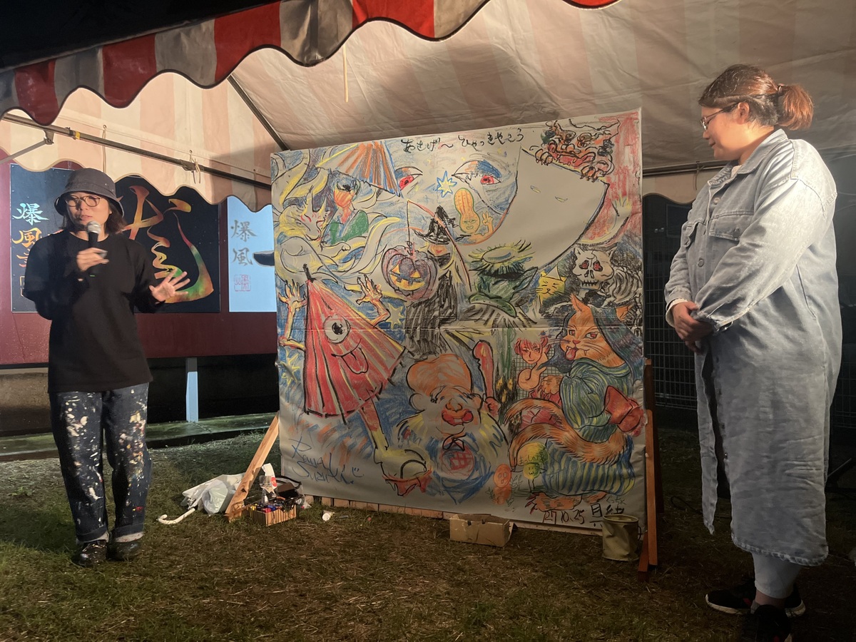 ライブペイント完成。感想を話すすずきらなさんと具緒さん