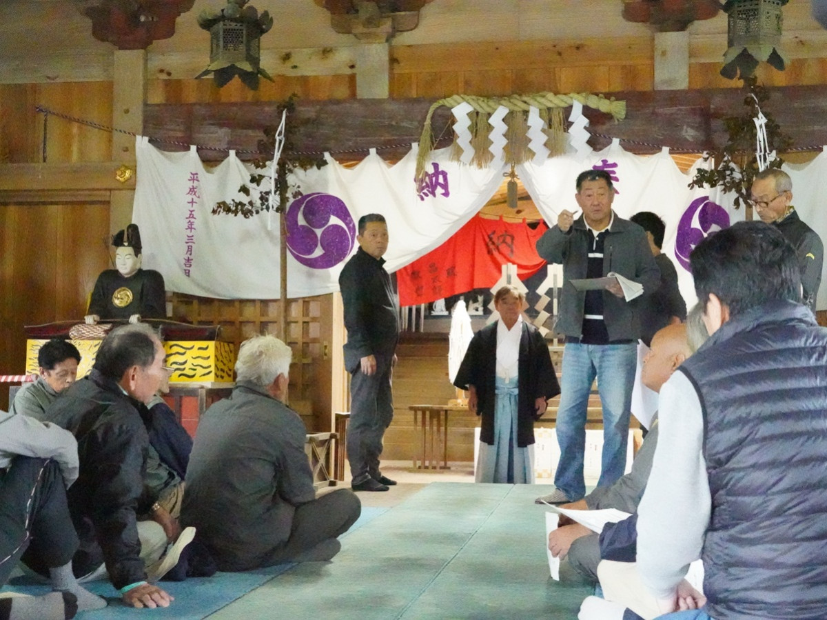 多古町の松崎神社(多古町東松崎)で10月26日、来年3月に開催される60年に1度の「神幸祭(しんこうさい)」に向けたリハーサルが行われた。