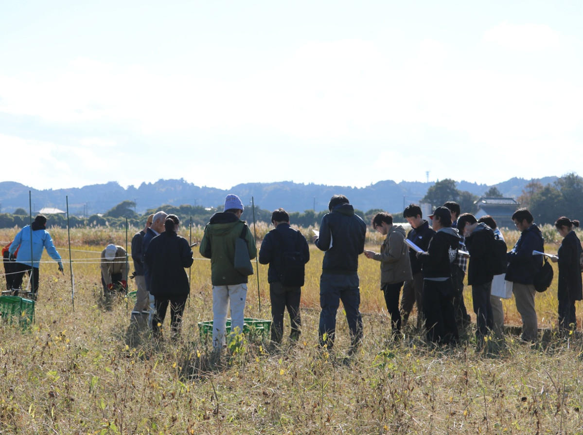 一宮の室川農園田圃(一宮町一宮)で11月20日、長生地域の若手農業者団体「長生ヤングパワーズクラブ(YPC)」の相互訪問が行われ、JA長生担い手支援課の大越一雄さんによる農福連携実践講義が行われた。