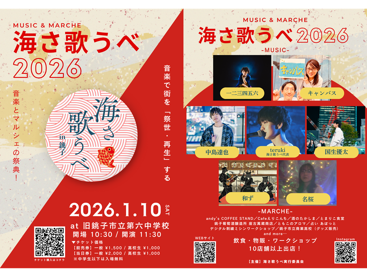 銚子発の音楽フェス「海さ歌うべ2026」が1月10日、旧銚子市立第六中学校(銚子市野尻町)で開かれる。