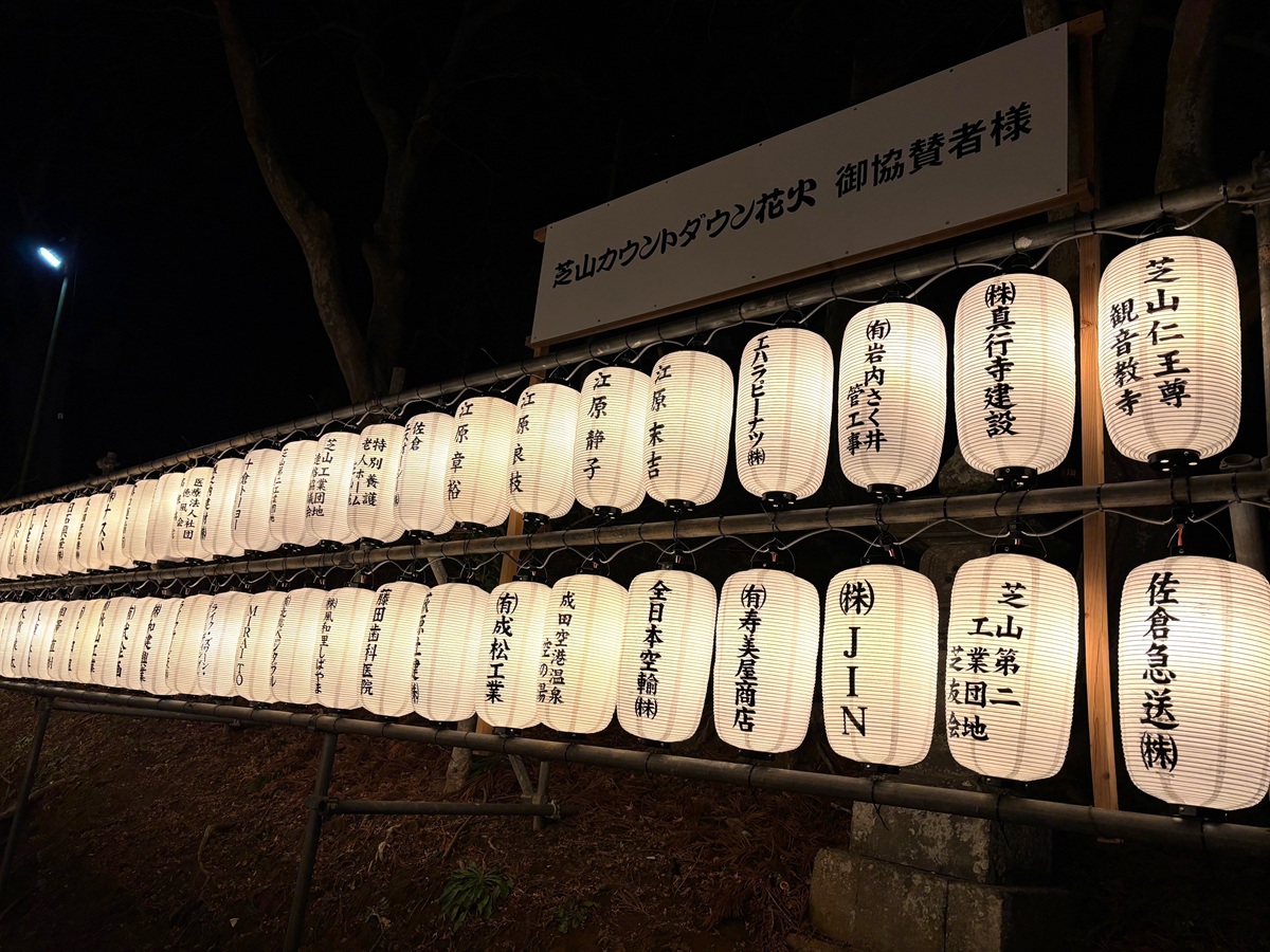 芝山町の芝山仁王尊下(芝山町芝山)で2026年元日の0時に「芝山カウントダウン花火」が行われた。