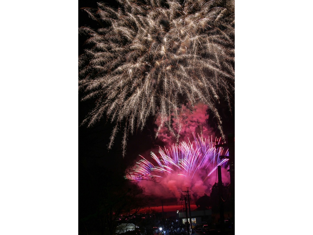 芝山町の芝山仁王尊下(芝山町芝山)で2026年元日の0時に「芝山カウントダウン花火」が行われた。