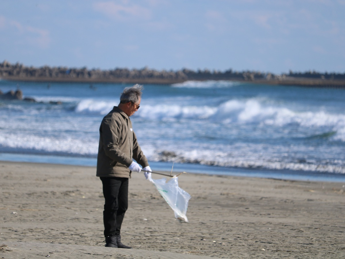 九十九里町片貝海岸で1月25日、毎月恒例のビーチクリーン活動が行われ、約30人が参加した。