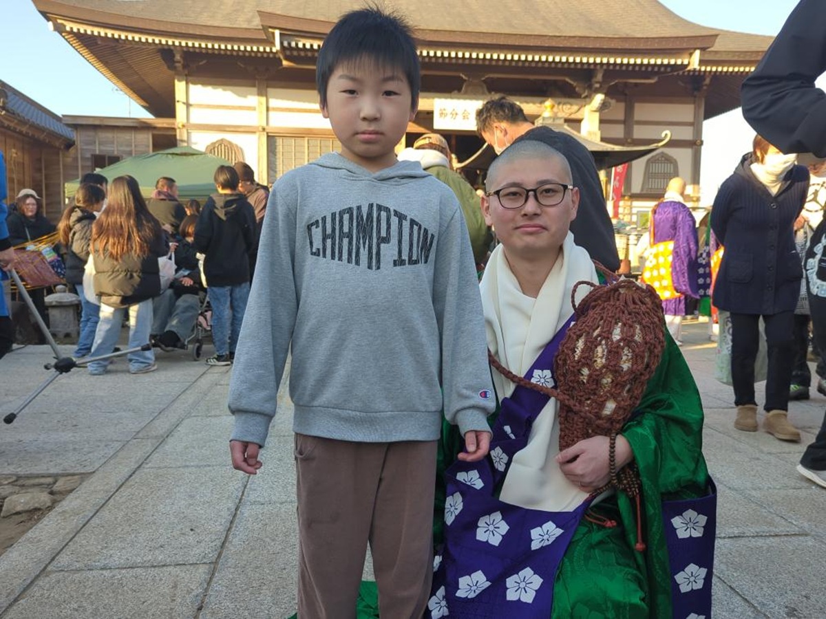 匝瑳の川向山長福寺(匝瑳市川向)で2月1日、恒例の節分会豆まき式が行われ、700人以上の来場者でにぎわった。