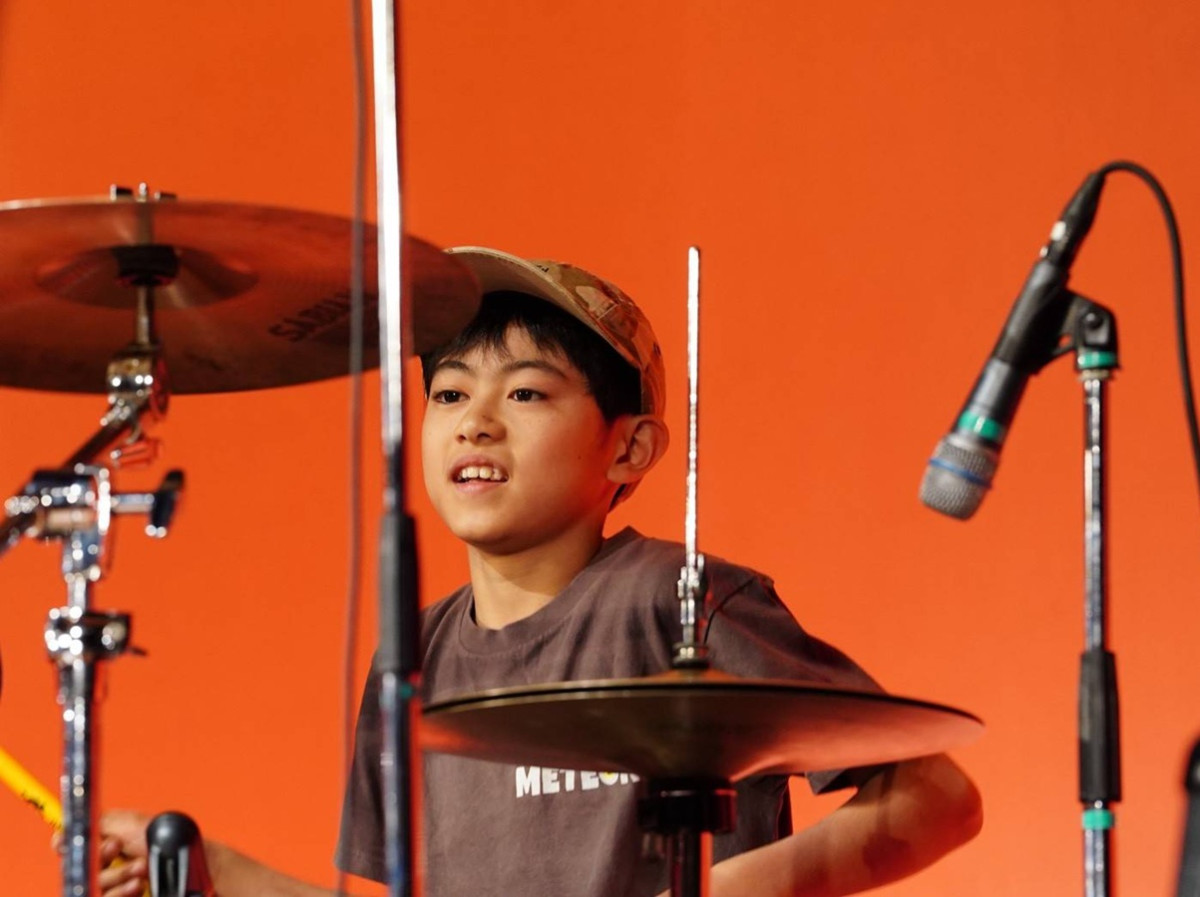 ドラムを披露した吉田凌さん(写真提供=秋山さおり)