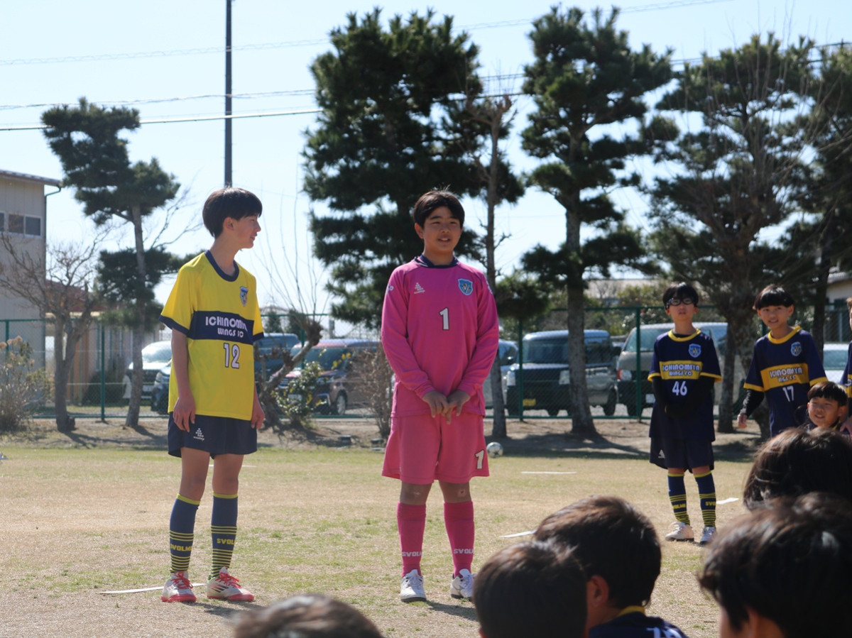 一宮町を拠点とする少年サッカーチーム「一宮ウィングスFC」が3月15日、東浪見小学校(一宮町東浪見)のグラウンドで6年生の卒団式(6年生を送る会)を開いた。