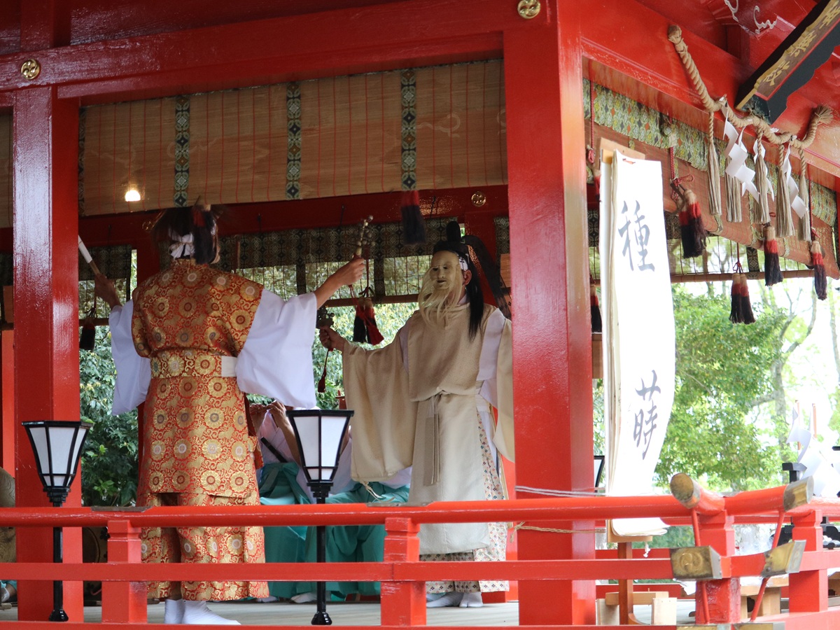 一宮町の玉前神社(一宮町一宮)で4月13日、「春季祭」が執り行われ、千葉県指定無形民俗文化財「上総神楽」が奉納された。