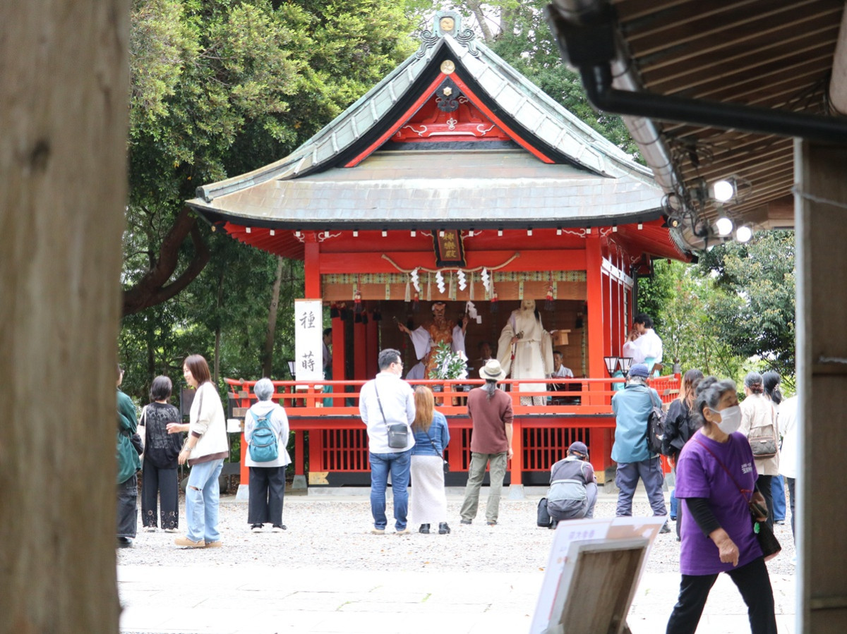 一宮町の玉前神社(一宮町一宮)で4月13日、「春季祭」が執り行われ、千葉県指定無形民俗文化財「上総神楽」が奉納された。